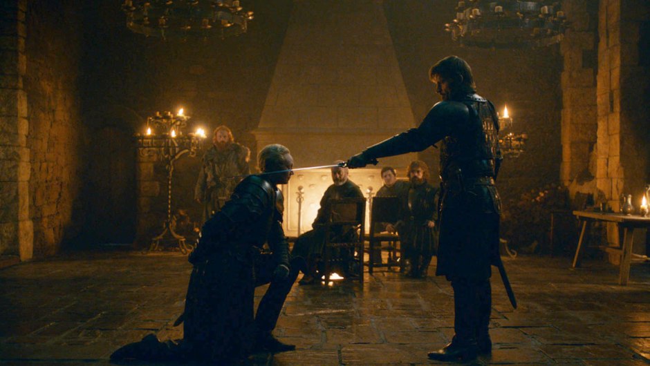 Mas o melhor ainda estava por vir: numa cena emocionante, Jaime sagrou Brienne como “Cavaleiro”, uma honraria que ela buscara durante toda a vida, mas que sempre lhe fora negada por ela ser mulher.